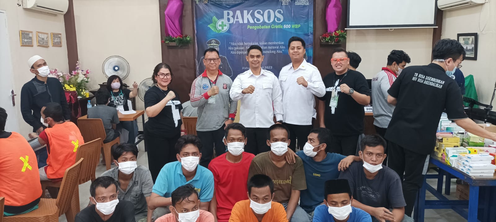Kegiatan ini atas terselenggaranya acara pengobatan gratis untuk 600 Warga Binaan Rutan di Gereja Bethesda Rutan Kelas I Jakarta Pusat.