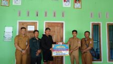 Ketua KPU memberikan cindera mata kepada pasangan calon Bupati Damar setelah berkas persyaratan diterima,