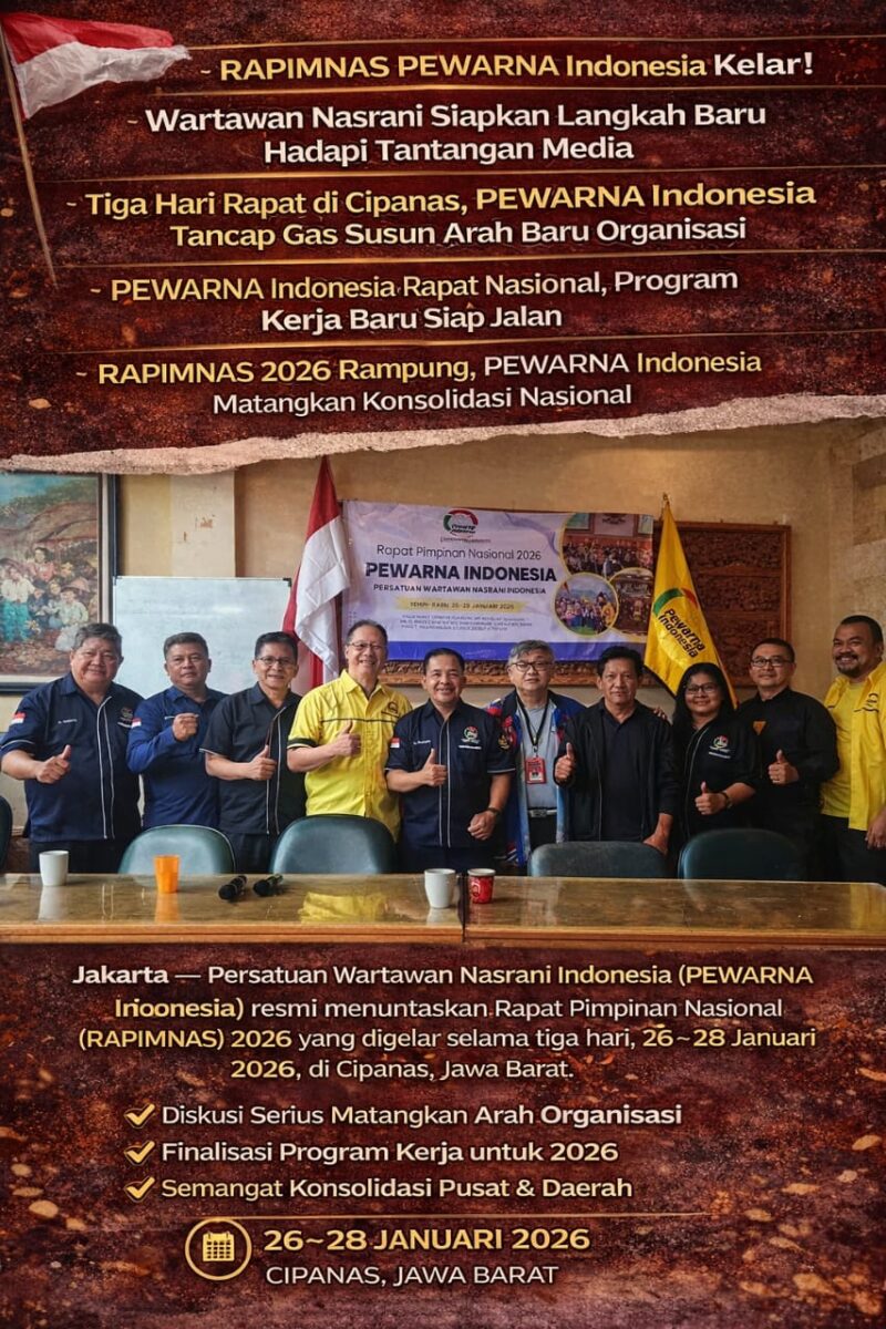 Persatuan Wartawan Nasrani Indonesia (PEWARNA Indonesia) resmi menuntaskan Rapat Pimpinan Nasional (RAPIMNAS) 2026 yang digelar selama tiga hari, 26–28 Januari 2026, di Cipanas, Jawa Barat. Agenda nasional tersebut berakhir kemarin, dengan sejumlah keputusan penting yang disiapkan untuk memperkuat organisasi ke depan.