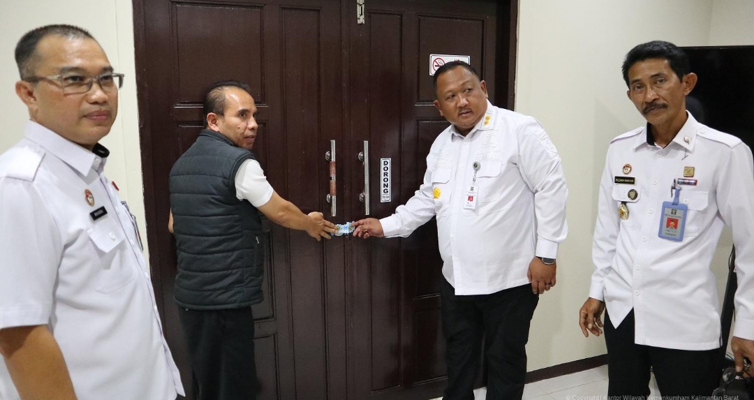 Kepala Bagian Umum Kanwil Kemenkumham Kalbar Ferry Indrawan bersama dengan Kepala Subbagian Kepegawaian, Tata Usaha dan Rumah Tangga Hendri Budi Iskanto dan Kepala Subbagian Humas, RB, TI Zulzaeni Mansyur melakukan penyegelan ruangan ujian tes Seleksi Kompetensi Dasar (SKD) untuk calon taruna di Kantor Badan Kepegawaian Negara (BKN) Provinsi Kalimantan Barat, Rabu (24/07) . Langkah ini dilakukan untuk memastikan bahwa tes berjalan dengan jujur dan adil, tanpa adanya intervensi atau kebocoran soal.